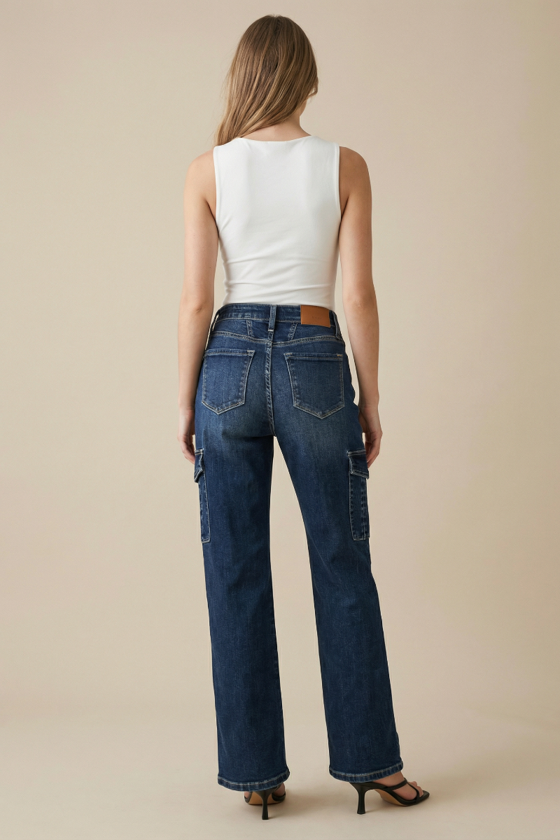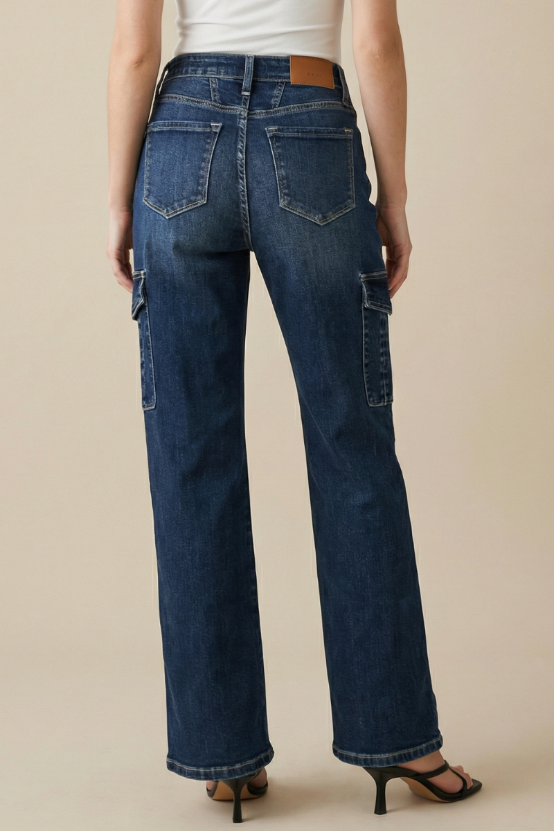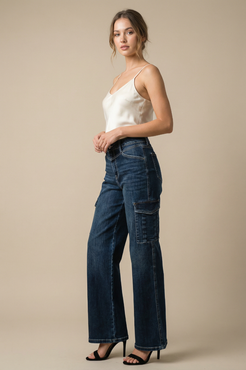 90s High Rise Wide Jeans – a unique blend of modern versatility and bold style. These jeans offer a fresh take on wide-leg denim, combining comfort, innovative design, and a touch of utilitarian charm.
