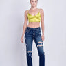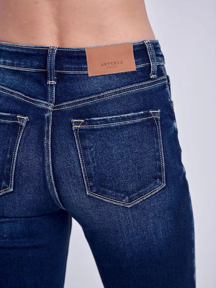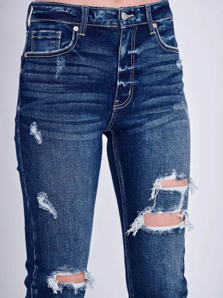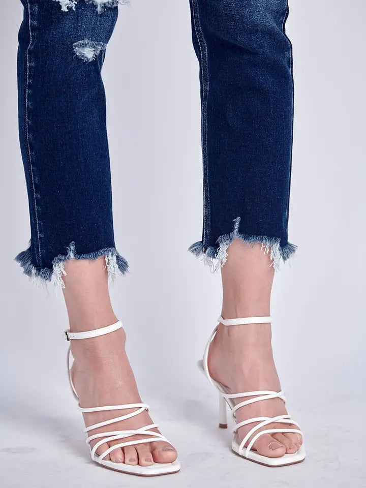 High rise Stretch Distressed Ankle Straight Jeans